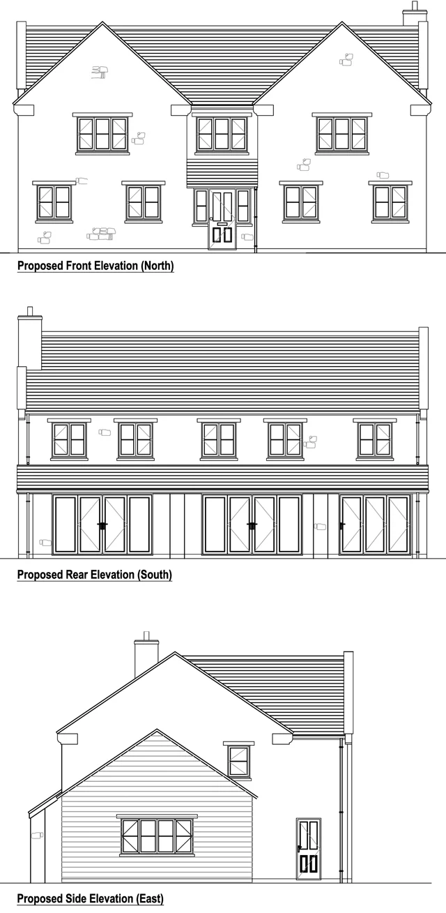 The most crass aspect of the design is that the elevation facing the road is proposed to be local stone but the other three sides are to be rendered. This might sound a minor offense but to just have a stone facade facing the road implies that the views from elsewhere are not important. The house on the site at the moment is completely rendered and painted white which makes it very prominent so replacing it offers the chance to build something more appropriate to its setting. At least the existing house has some integrity. Does it only matter what it looks like from the road? Do people not walk across the countryside any more? There are plenty of rural buildings that have a finer facade on the street elevation than on the other sides but these tend to have been later alterations and are part of the history of the house. Here using render instead of stone is obviously a means of keeping down costs but in such a visible location surely a building should be designed as a 3-dimensional composition to be seen in the round, not as a wild west stage set.